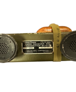 This complete set is in excellent original condition, showing light wear consistent with service use. The BC-1000 retains its original canvas harness, data plate, and handset. Both walkie-talkies are complete with intact antennae, original finish, and internal components (untested for functionality). The set presents beautifully for display or museum exhibition.