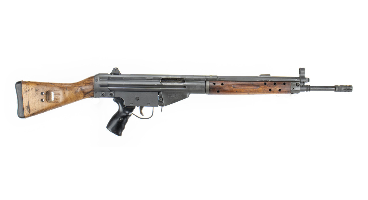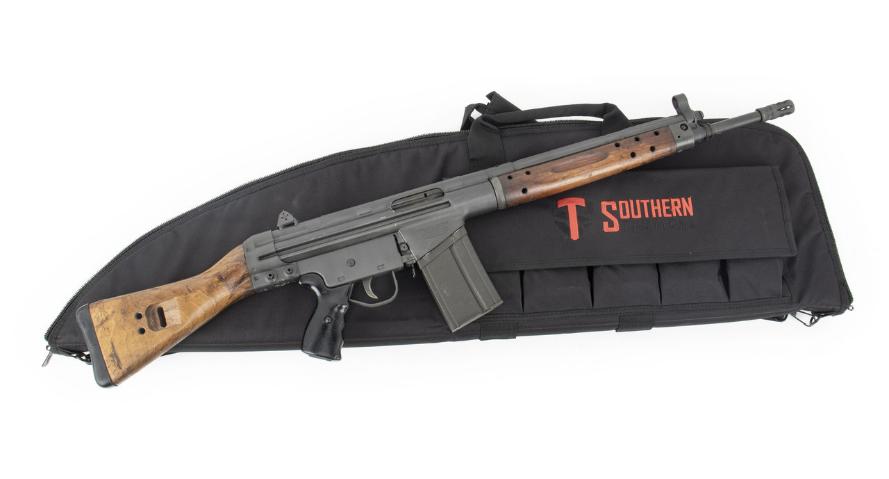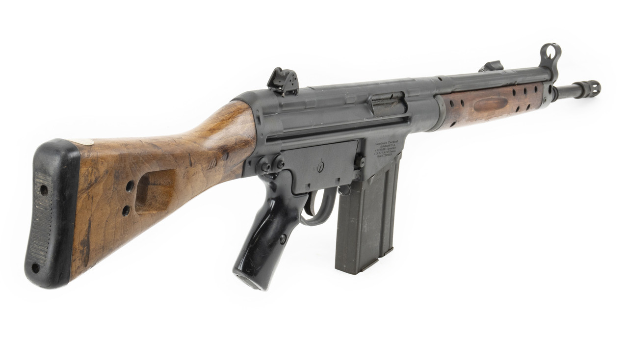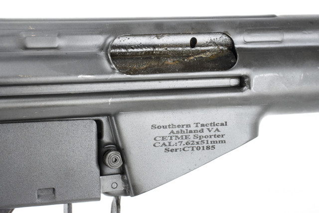 The Cetme C rifle is a custom-built firearm, combining original Spanish Cetme parts with a new US receiver, barrel, charging handle, trunnion, magazine floor plate and flash hider. Crafted by the skilled Southern Tactical team, the receiver adheres to German HK steel specifications and is made with original HK tooling. The Nitride-treated barrel features a 5/8X24 thread, accommodating various muzzle devices and suppressors. Treated wood adds character, while the distressed grey teflon finish provides a rugged battlefield appearance, complemented by original Spanish Cetme markings. Modified to semi-auto, the Spanish military trigger group has been modified to semi-auto maintaining it’s originality. The package includes one Cetme 20rd magazine with a US-made floor-plate for 922r adherence. Original G3 magazines may not perform well. Optimal performance is achieved with excellent condition Cetme magazines, making this rifle a unique and prized piece.