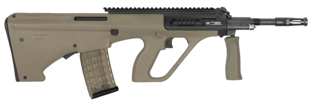 The iconic bullpup-style Steyr AUG has been one of the most recognizable rifles in the world since its adoption by the Austrian army in 1977 and is now available for civilian use as the Steyr AUG A3 M1. The short-stroke gas-piston operation of the AUG runs exceptionally cleaner by nature because all of the operational exhaust gas vents out of the front of the rifle. The AUG A3 M1 has all the classic features and benefits that established it as the pinnacle of modern rifle design. It also features a quick-change barrel with a collapsible forward grip as well as a two-position cross-bolt safety that locks the trigger.