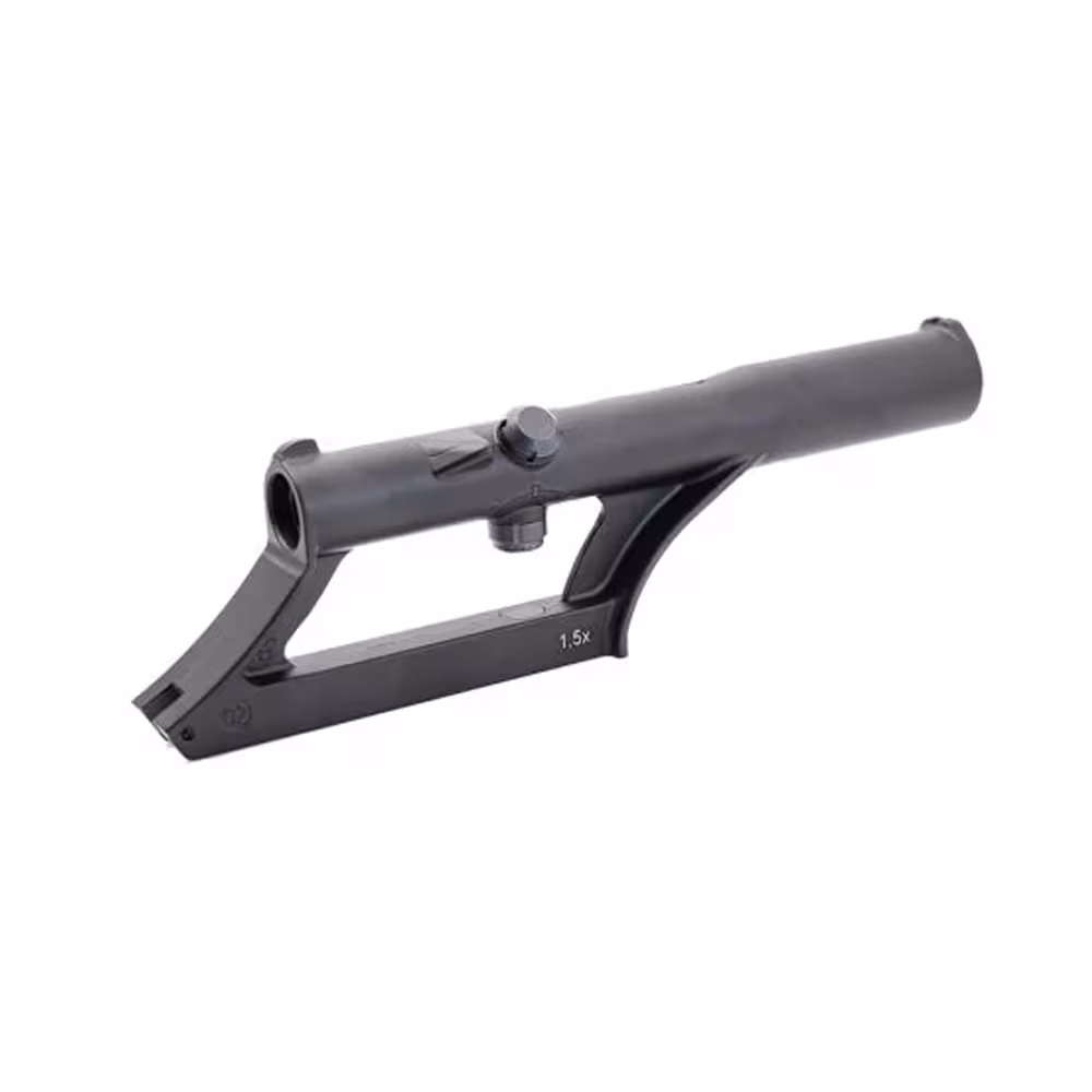 The STG 77 1.5x Riflescope is nearly an exact replica of the optics used on the original AUG rifles. It features the same profile, integrated backup sights, and weight as the original. The “Donut” reticle has been upgraded with a pin-point center dot for more accurate aiming at range and the support struts have gotten slight buttressing to increase durability. This optic mounts directly into the receiver of the AUG A3 M1, but can be easily switched back out with the rail.