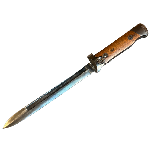 The folding bayonet design was part of Italy’s effort to simplify and modernize infantry equipment during the late interwar and wartime periods. Compact and practical, it reduced the length and weight burden of fixed blades while preserving close-combat capability. These bayonets were primarily issued to Italian troops during World War II and saw widespread use across various theaters of the conflict.