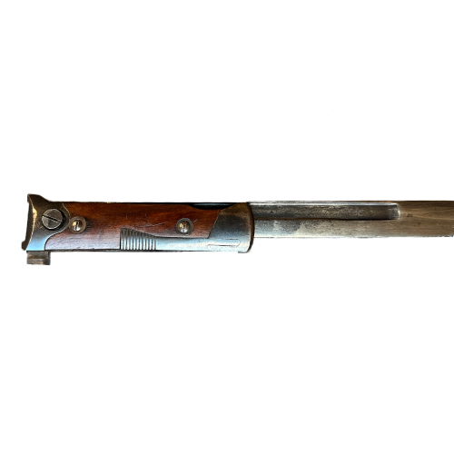 These bayonets were typically issued with steel scabbards, allowing them to be detached from the weapon and carried on the belt alongside other field equipment.