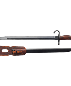The Type 30 Arisaka bayonet featured a blade with a single edge and a fuller groove running along most of its length. The blade was approximately 15.75 inches (400mm) long. One distinctive feature of the Type 30 bayonet was its hooked quillon, which is a curved handguard that extends downward from the crossguard. This hooked quillon design was intended to catch an opponent’s weapon or equipment and disarm them in close combat. It could also be used as a wire cutter.